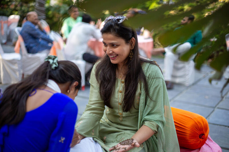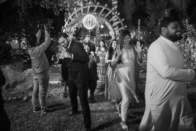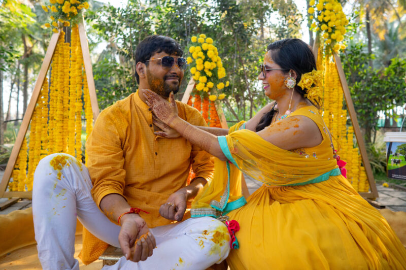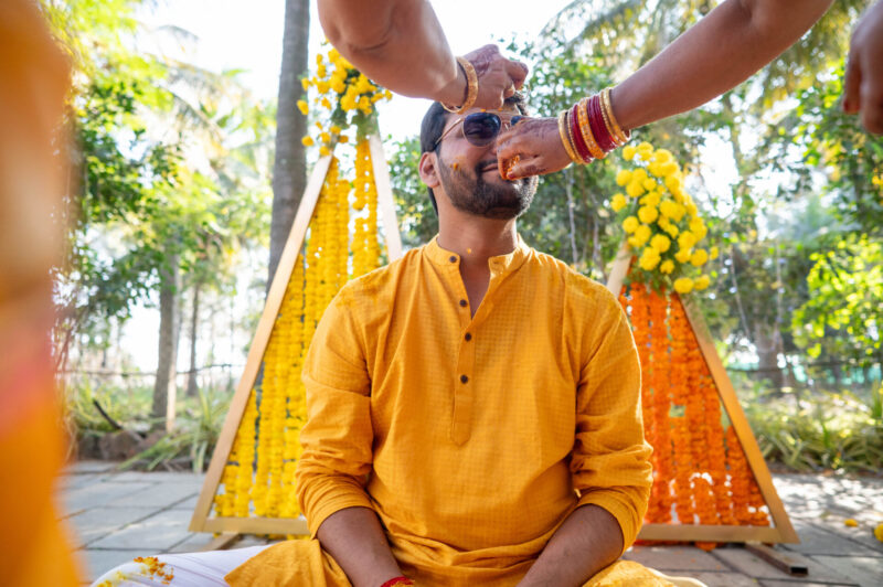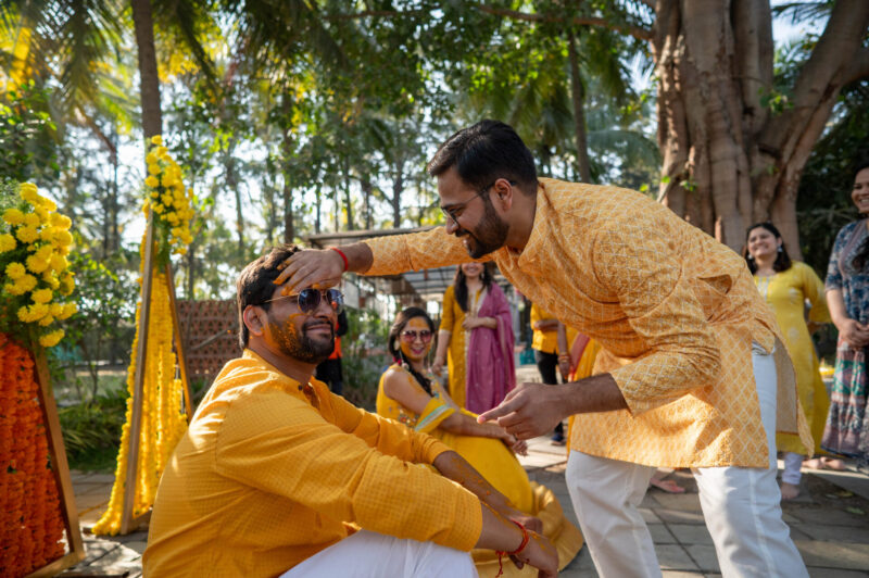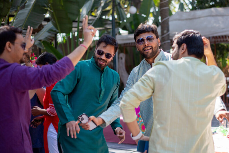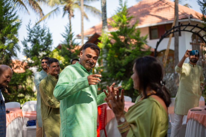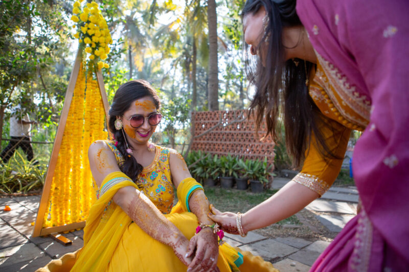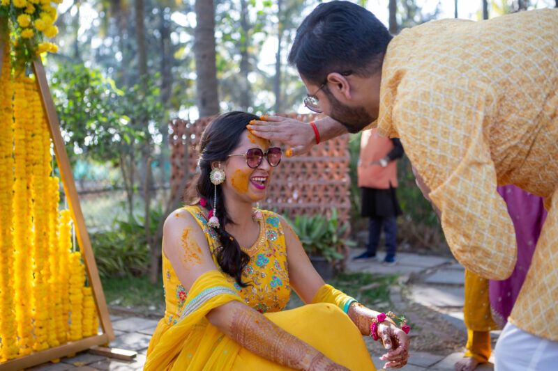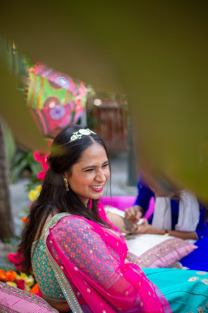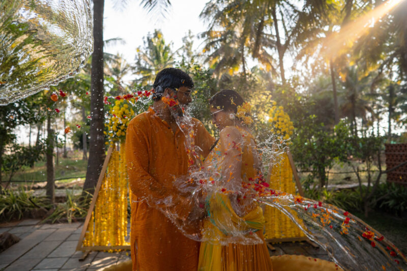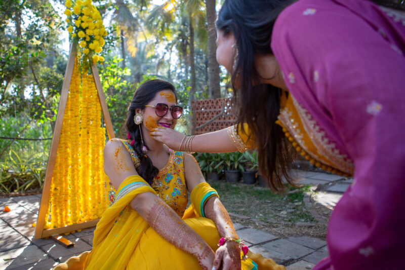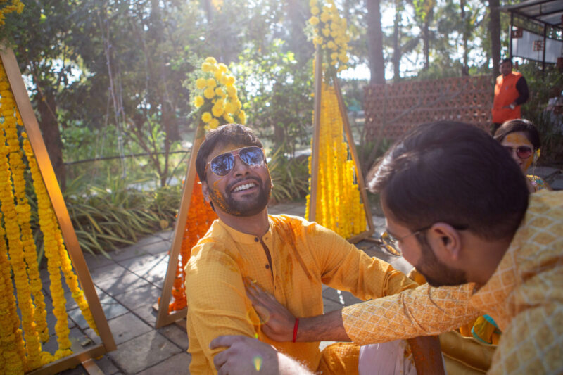 We began with photographing an intimate Mehendi ceremony in a farmhouse, surrounded by close family and friends. This was followed by a lively Haldi ceremony that felt more like Holi with all the splashes and fun. The evening sangeet had everyone dancing, creating memories that we were thrilled to capture.